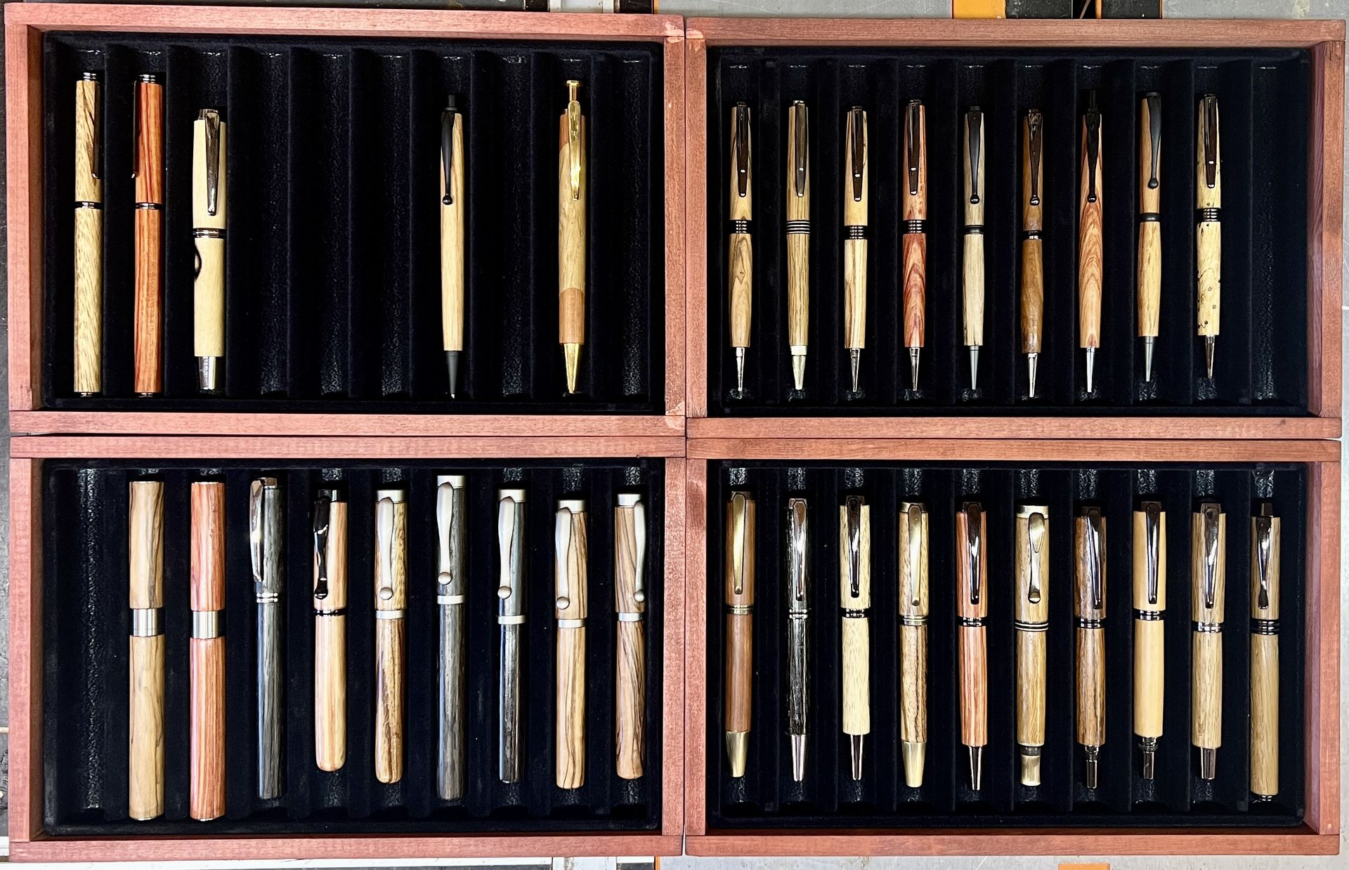 Ob Kugelschreiber, Feinminenbleistift, Rollerball oder Füllfederhalter, aus unterschiedlichen Hölzern und Metallen gebaut, werden sie personalisiert mit